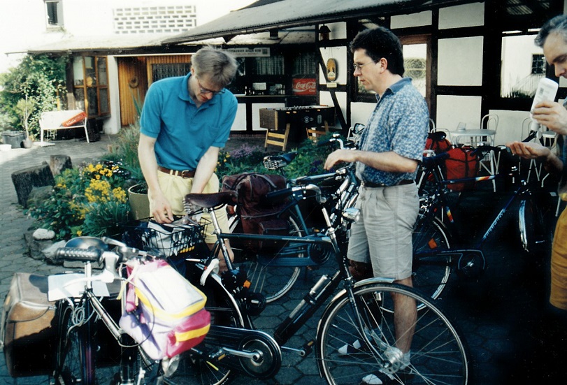 Wir kommen ins Ruhrtal. Immer am Fluss entlang halten wir kurz am Pumpspeicher-Kraftwerk am Hengsteysee, wollen Herdecke passieren aber Günters Gepäckträger will nicht. Er bricht in sich zusammen. Günter findet schnell ein Fahrradgeschäft und kauft sich einen Neuen. Über Wetter kommen wir zum Kemnader Stausee. Dort ist Hitzepause mit Apfelschorle.