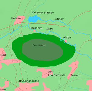 Über Hünxe und durch den Dämmerwald kommen wir nach Bottrop-Kirchhellen, wo bereits die ersten Dinos des entstehenden Freizeitparkes Warner Brothers Movieworld zu sehen sind. Hinter Dorsten durchqueren wir Die Haard mit ihren riesigen Kiefernwäldern.