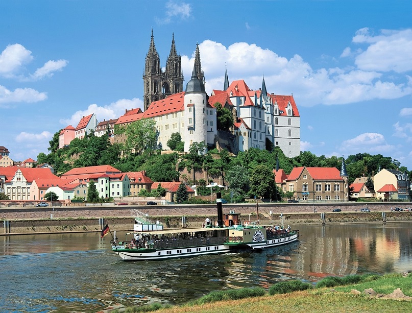 Vor Niederlommatzsch erwischt uns eine der ganz wenigen Steigungen der Tour. An der Elbe in der Elbklause ist eine Pause angesagt. Anschließend setzen wir mit der Fähre nach Diesbar-Seußlitz über. Dort probieren die meisten zum ersten Mal in ihrem Leben Elbwein vom kleinsten Anbaugebiet Deutschlands. Er schmeckt uns hervorragend. Vorbei an Nieschütz, Kleinzadel und Rottewitz erreichen wir Meissen.