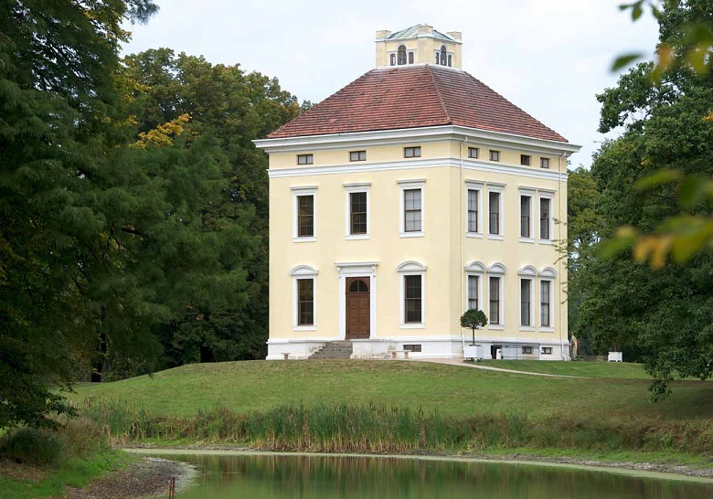 Das Gartenreich Dessau-Wörlitz ließ Fürst Leopold III. Friedrich Franz von Anhalt- Dessau zwischen 1760 und 1817 erbauen. Es gilt als „herausragendes Beispiel für die Umsetzung philosophischer Prinzipien der Aufklärung“. Höhepunkt bildet die Gartenanlage in Wörlitz, von der Goethe schrieb: »Hier ist’s jetzt unendlich schön. Mich hats gestern Abend wie wir durch die Seen Canäle und Wäldgen schlichen sehr gerührt wie die Götter dem Fürsten erlaubt haben einen Traum um sich herum zu schaffen …« Johann Wolfgang von Goethe am 14. Mai 1778 aus Wörlitz an Charlotte von Stein
