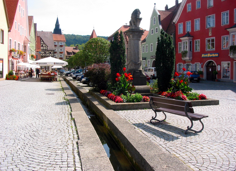 Unser erstes Ziel am Morgen ist Dietfurt. Der Rathausvorplatz überrascht durch eine Chinesenbrunnen. In dieser Stadt hat Chinesenfasching Tradition. Über Beilngries geht es durchs weite Altmühltal weiter nach Berching.