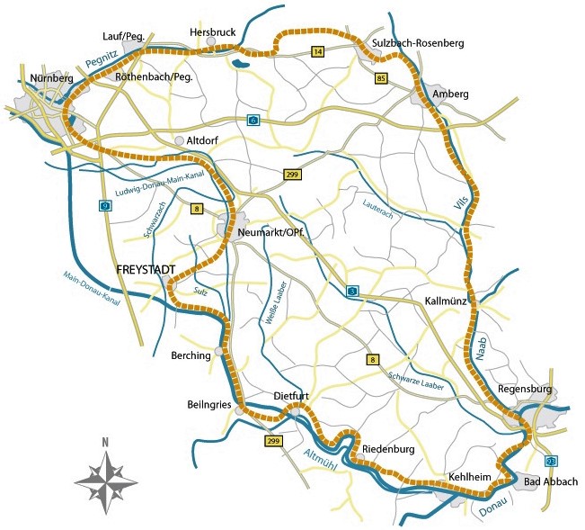 Strecke | Untereggersberg – Dietfurt – Beilngries – Berching – Freystadt – Neumarkt – Burgthann |
