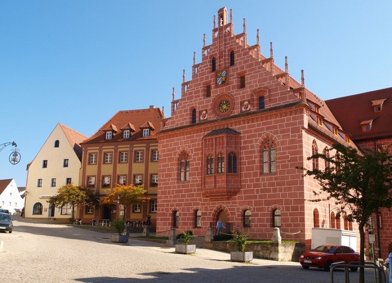 Vor Freystadt besichtigen wir eine moderne Staustufe des Main-Donau-Kanals. Auch Freystadt erweist sich als eine dieser typischen fränkischen historischen Kleinstädte, aufgeräumt und sehenswert. Vor der Stadt besuchen wir kurz die Wallfahrtskirche Maria Hilf.