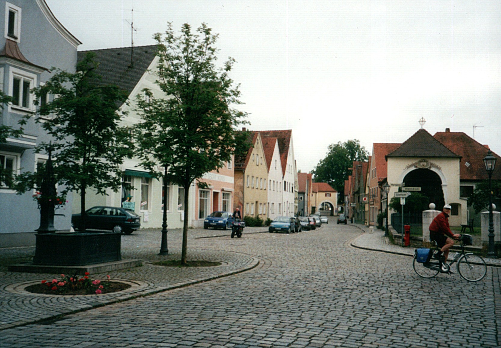 Eigentlich sollte Neumarkt für heute Ziel unserer Fahrt sein. Es ist jedoch noch recht früh am Nachmittag. So beschließen wir, die Fahrt nach einer kurzen Stadtbesichtigung fortzusetzen. Christian, Jürgen und Karl-Heinz nutzen die Zeit und finden zielstrebig die Privatbrauerei Glossner. In der merkwürdigen schmalen Brauereischänke an der Stadtmauer hätte es so schön werden können. Der Chef persönlich kümmert sich um die Gäste aus dem fernen Münster. Ihm ist die dortige Bierbrau-Szene (Pinkus, Potts) bestens vertraut. Seine Einladung in sein privates Brauereimuseum im Keller des Hauses können wir leider nicht mehr annehmen. Am alten Ludwig-Main-Donau-Kanal geht es noch fünfzehn Kilometer weiter nach Burgthann. Unterwegs haben wir die Gelegenheit, Herrn Zabel und Co. auf ihrer Bayernrundfahrt zu erleben.
