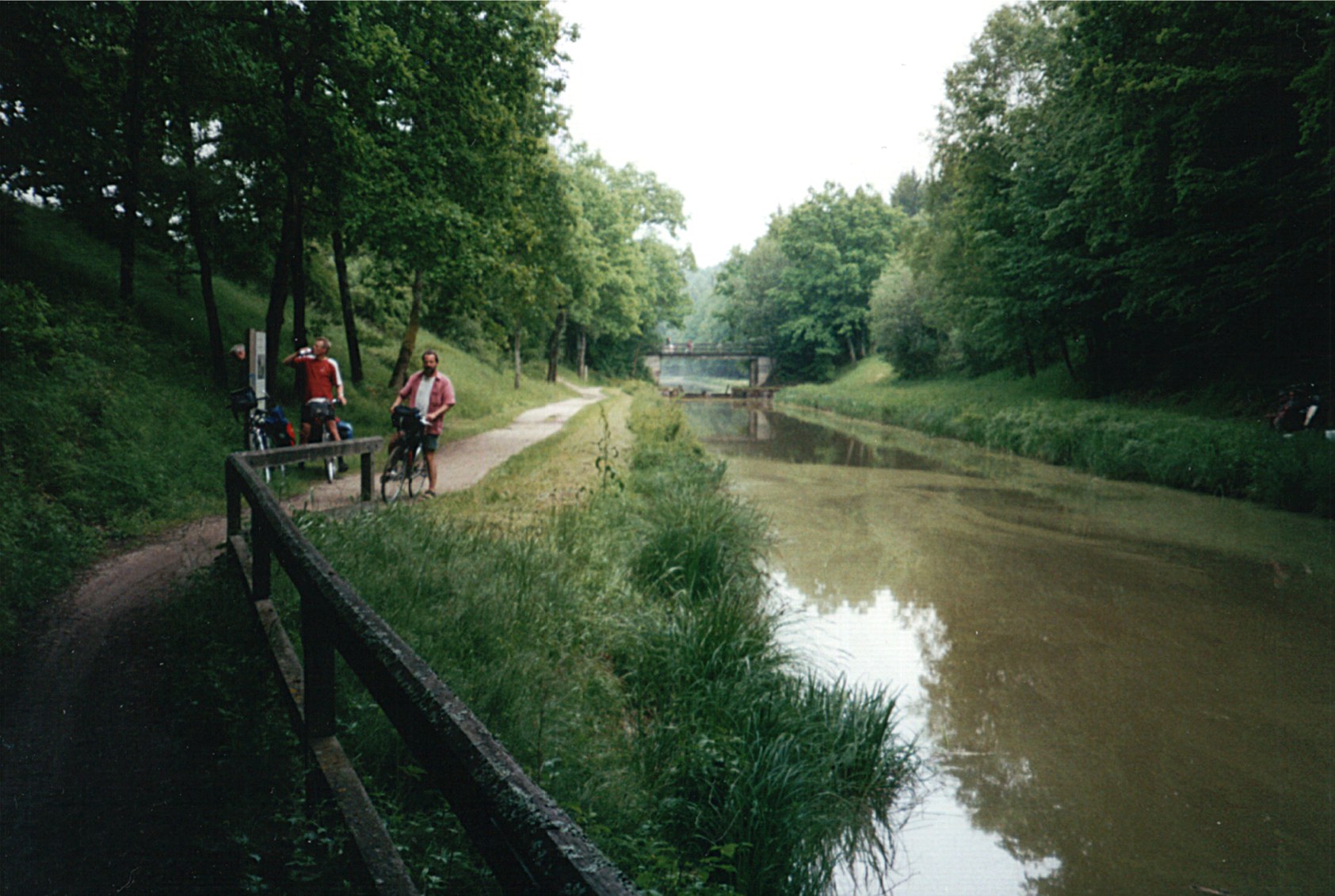 Von der Burgschänke verabschieden wir uns nach reichlichem Frühstück und mit leichten Nachwirkungen des abendlichen Knobelns. Nach einem leichten Anstieg sind wir am Ludwig-Main-Donau-Kanal. Den verlassen wir bis kurz vor Nürnberg nicht mehr. Hier ist der am besten erhaltene Abschnitt des historischen Kanals mit über vierzig Staustufen, zwei Überquerungen (Schwarzach) und dem Scheitelpunkt des Kanals.