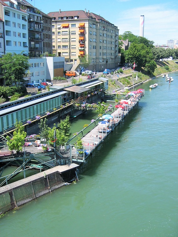 Wir erreichen Basel Bad gegen 13:30 Uhr. Mitten durch den Bahnhof verläuft die Grenze zur Schweiz. Für Günter wird dieser Grenzgang besonders spannend, da er keinerlei Ausweis mit sich führt. Er und eigentlich auch wir alle haben Glück. Es gibt keine Kontrollen. Wir überqueren den Rhein und erreichen durch Basels Randbezirke schon bald die Grenze nach Frankreich. Die Landschaft auf französischer Seite ist der Sundgau. Er umfasst in etwa den Landstrich zwischen Basel, Mülhausen und Belfort. Das Regionalzentrum ist die Kleinstadt Altkirch. Historisch umfasste der Sundgau ursprünglich das gesamte Oberelsass, später jene Teile davon, die unter habsburgischer Herrschaft standen. Die Hügellandschaft ist stark von landwirtschaftlicher Tätigkeit und dörflichen Strukturen geprägt. Die klimatischen Bedingungen sind gegenüber der benachbarten Rheinebene ungünstig. Wir durchqueren ihn jedoch bei hochsommerlichen Temperaturen. Aus schierer Not müssen wir unterwegs eine Bäuerin um Leitungswasser bitten. Sie schaut uns zwar ein wenig befremdet an, stellt uns ihren Wasserhahn auf dem Hof aber bereitwillig zur Verfügung. Durch Hésingue, Attenschwiller, Michelbach, Hundsbach, vorbei an Altkirch erreichen wir bei Illfuth den Canal du Rhône au Rhin.