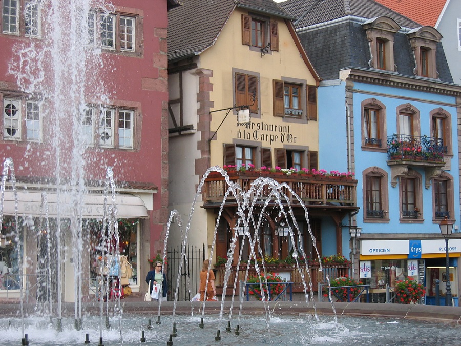 Pünktlich sind wir auf den Fahrrädern. Wir verlassen den Sundgau und kommen in die elsässische Weinregion, also in die Landschaft, die unter dem Namen Elsass gewöhnlich verstanden wird. Weinbau beherrscht jetzt die Gegend. Wir passieren Ensisheim und Guebwiller. Unsere erste Rast machen wir in Rouffach. Das Städtchen gefällt durch sein mittelalterliches Ambiente. Nur die vielen Autos auf dem Marktplatz stören ein wenig. Hinter dem alten Kornhaus finden wir ein lauschiges Straßencafe.