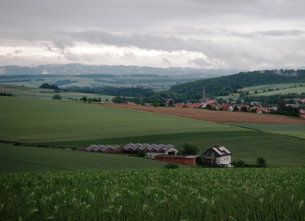 Wir fahren lange an diesem Tag und sind erst nach neunzehn Uhr in Duderstadt. Zum Glück hat die Regenneigung nach der Pause in Hannoversch Münden nachgelassen. Südniedersachsen zeigt sich als offenes leicht hügeliges Land mit unscheinbaren kleinen Orten. Kurz vor Duderstadt bei Nesselröden zeigt sich vor uns in der Ferne zum ersten Mal der Harz.