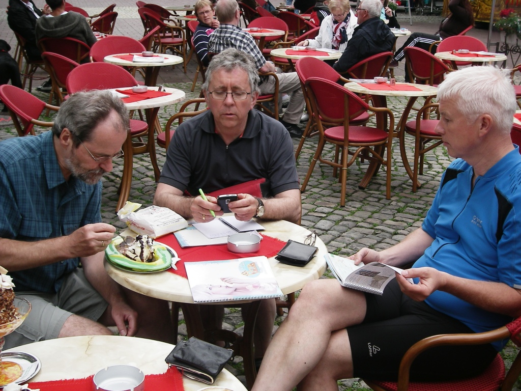 In Herzberg ist der Harzrand erreicht. Am Bahnhof informieren wir uns über Bahnfahrgelegenheiten für Karl-Heinz. Das Knie macht mächtige Probleme. Er will aber zumindest bis Osterode weiter mitfahren. Osterode erreichen wir gegen zwölf Uhr. Wir machen eine ausgiebige Kaffee- und Eispause auf dem Marktplatz. Ab hier beginnen definitiv die anspruchsvolleren Steigungen hoch in den Harz nach Clausthal-Zellerfeld. Für Karl-Heinz ist hier Schluss für heute. Er kann einen Bus nach Clausthal-Zellerfeld nehmen.