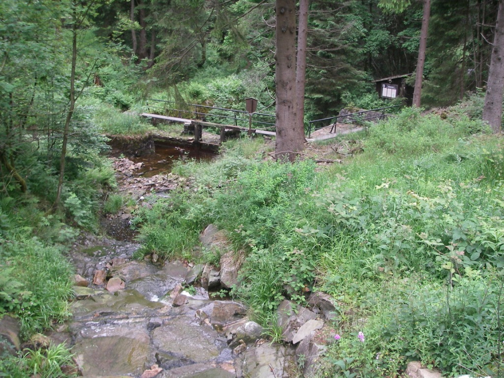 Am nächsten Morgen nieselt es noch immer ein wenig. Nach einem kurzen Apothekenstop (Voltaren und Arnika fürs Knie) starten wir in Richtung Harz. Kurz vor Rhumspringe stoßen wir auf eine ausgebaute ehemalige Bahntrasse, auf der wir bis Herzberg komfortabel fahren können. Nordöstlich des Ortes entspringt die Rhume. Die Rhumequelle ist mit bis zu 5.000 Litern Wasserausstoß pro Sekunde eine der größten Karstquellen Europas.