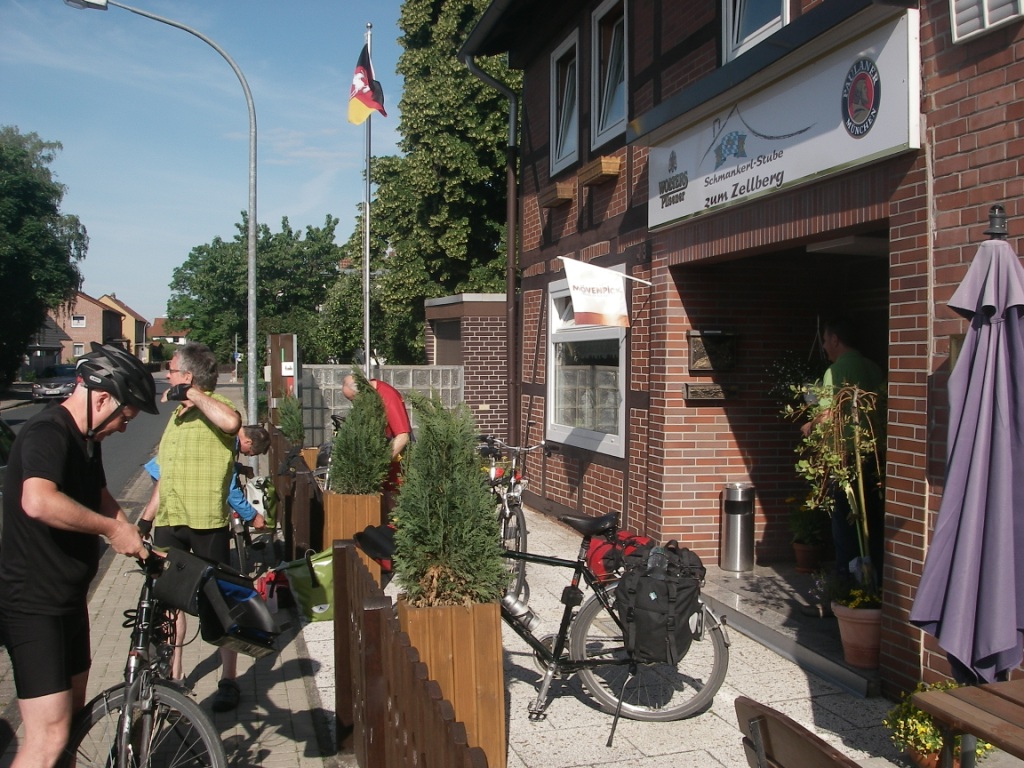 Der nördlich der Stadt gelegene Flughafen Braunschweig-Wolfsburg erweist sich als echtes Hindernis. Wir haben Schwierigkeiten, ihn zu umfahren. Kurz hinter Abbesbüttel queren wir den Mittelland-Kanal. In Meine im Gasthaus Schmankerl-Stube zum Zellberg übernachten wir. Den für Norddeutschland untypischen Namen hat das Haus vom Besitzer, einem waschechten Bayern, den die Liebe nach Meine verschlagen hat, erhalten. Wir trinken und essen zünftig bei ihm und genießen am Abend das Deutschlands EM-Viertelfinalspiel (gegen Griechenland 4:2).