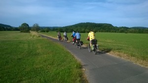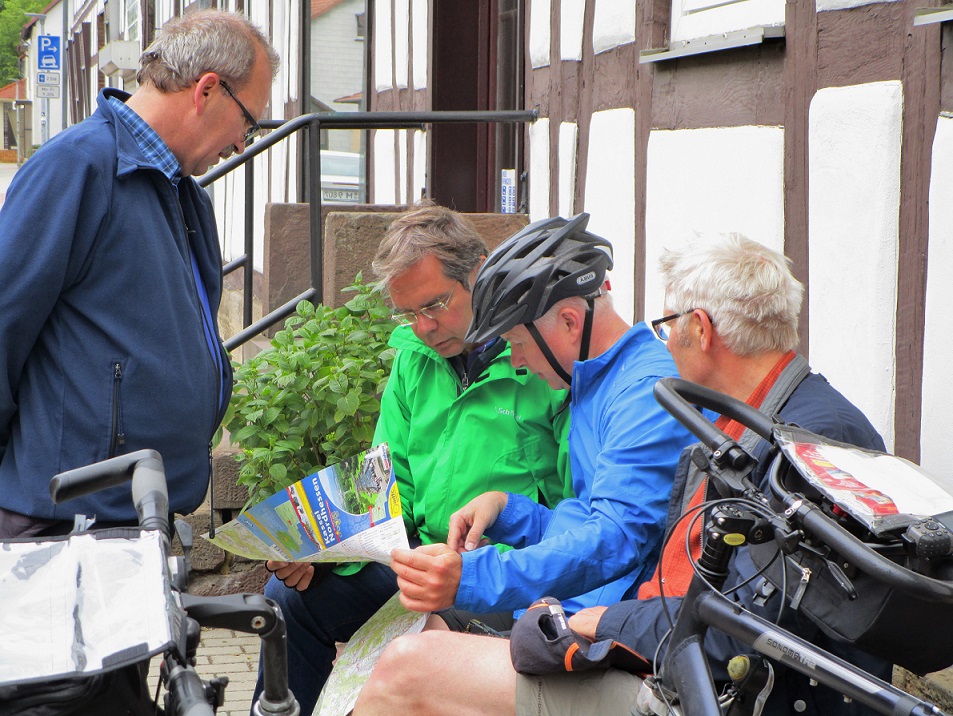Die diesjährige Tour will Peter erstmalig mit einer kräftemäßigen Entlastung bewältigen. Er fährt elektrisch verstärkt mit einem schicken Simplon Kagu. Das hat eine deutliche Geschwindigkeitssteigerung für alle zur Folge gehabt. Für die letzten Kilometer bis Hofgeismar ist für Peter allerdings wieder das ungeliebte Quälen angesagt, da der Akku mittlerweile leer gefahren ist.