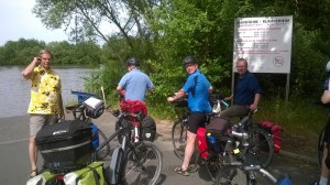 Die DB schafft es erst bis kurz vor 15 Uhr, uns nach Frankfurt zu bringen. Vom Hauptbahnhof sind es nur wenige hundert Meter bis zum Main, den wir über die Friedensbrücke queren. Immer auf dem Uferweg lassen wir die Großstadt schnell hinter uns. Wir passieren die EZB, den neu erbauten Tempel der europäischen Finanzen. Zwischen Offenbach und Mühlheim am Rumpenheimer Schloss wechseln wir mit der Mainfähre Rumpenheim wieder die Mainseite.