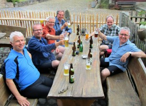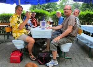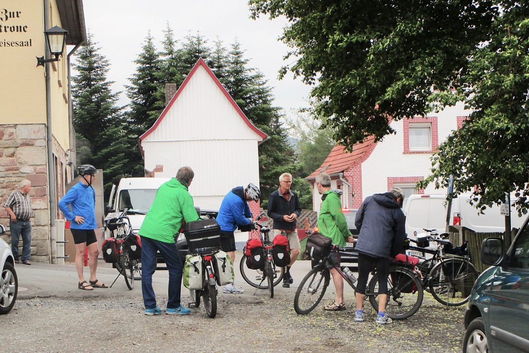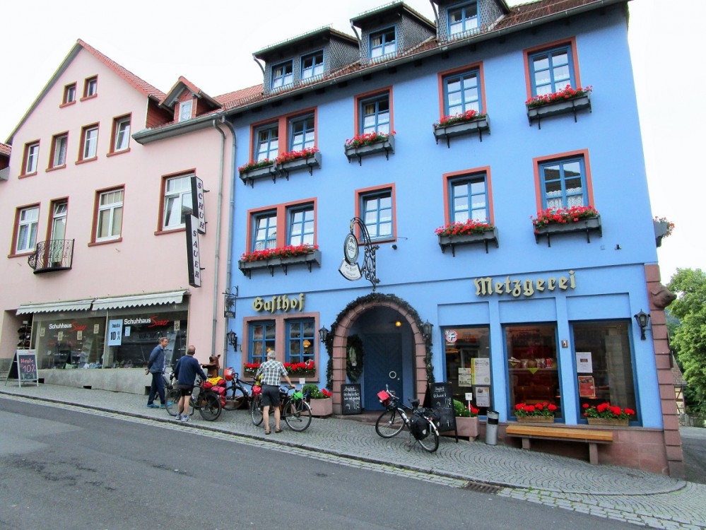Auf schönen Wegen immer durchs Kinzigtal fahren wir noch 12 Kilometer weiter bis Wächtersbach. Wir kommen im Hotel zum Erbprinzen unter. Das Abendessen genießen wir im schönen Biergarten. Bei einem kleinen Spaziergang müssen wir feststellen, dass der ganze Ort wie verlassen wirkt. Öffentliches Leben gibt es an diesem Abend nur in unserer Herberge, die wir auch schnell wieder aufsuchen um noch an letzte Biere zu kommen.