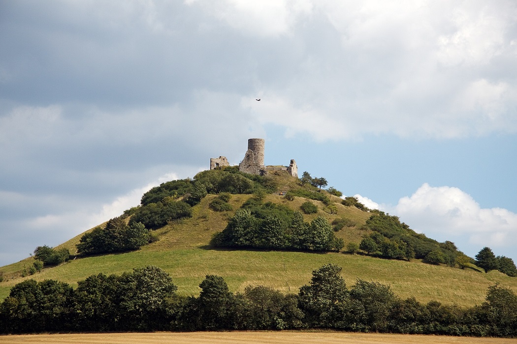 Hier in Creuzburg verlassen wir die Werra. Es geht jetzt nord-westwärts durch den Ringgau, einem zwischen Meißner und Thüringer Wald gelegenem Hochplateau, kulinarisch bekannt als Wurstparadies. Vor Lüderbach fällt uns zur Rechten ein merkwürdiges Bauwerk auf einem Hügel auf. Es handelt sich hierbei um die Grabpyramide derer von Capellan aus dem Jahr 1776, in der die letzten Mitglieder der Familie begraben sind.