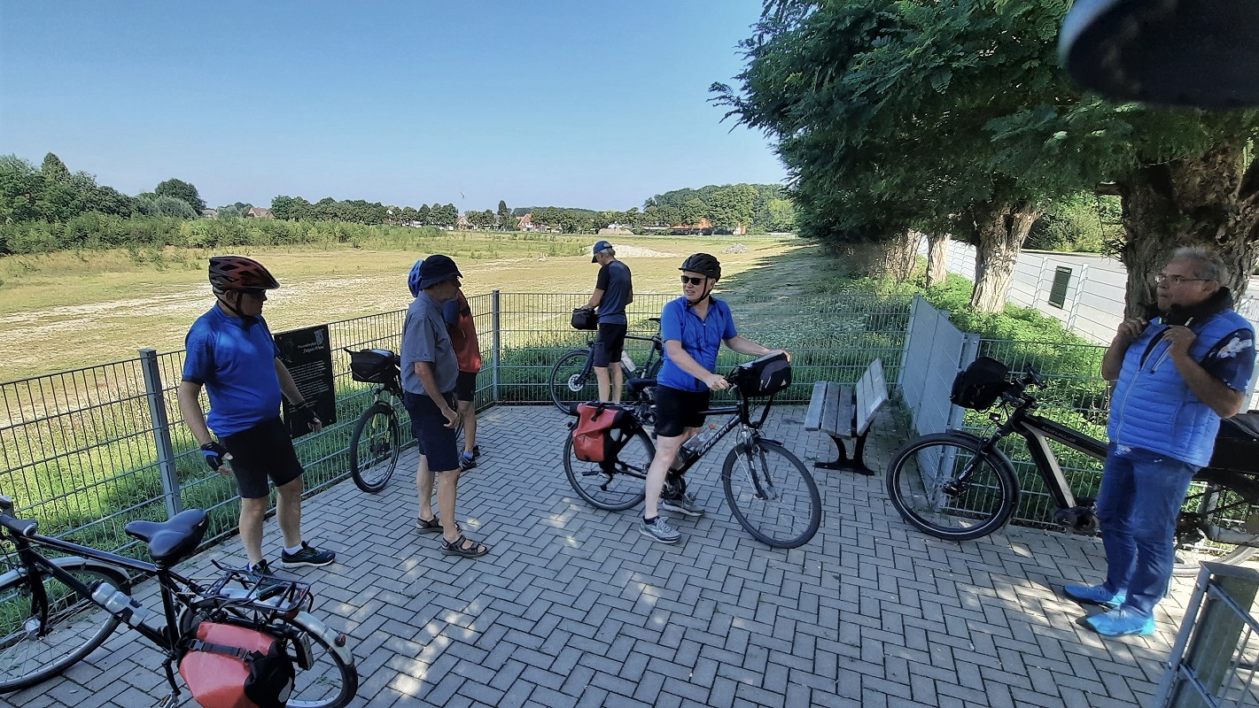 Zurück gen Münster geht es überwiegend auf dem Emsauenweg mit schönen Einblicken ins Emstal. Über Hembergen und Greven fahren wir bis Gimbte, wo wir am Dorfladen rasten. Einen kurzen Zwischenstop legen wir an der KÜ-Baustelle ein. Durch die Rieselfelder mit Rundumblick auf der Aussichtsplattform, vorbei an Münsters Recyclinghof und Schleuse erreichen wir gegen 17 Uhr die Gaststätte Mauritz Eck an der Warendorfer Straße Ecke Kirchstraße. Das Bier schmeckt und wir werden alle satt.