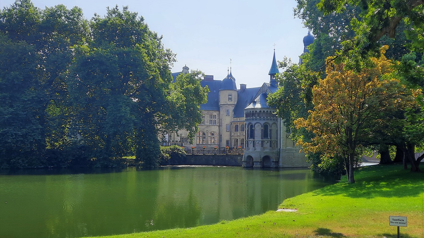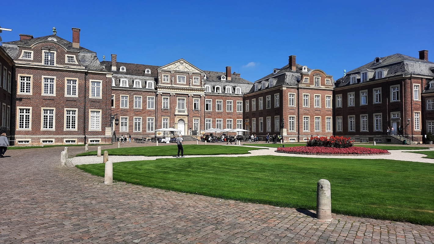 Hinter dem Longinusturm genießen wir die langgezogene Abfahrt hinunter nach Havixbeck. Von dort geht es auf herrlichen Wegen zur Burg Hülshoff, die sich gerade als Kultureinrichtung des Landes etabliert. Wir geraten in das Literatur-Festival Westopia, dass sich der mehrsprachigen Literatur der Zukunft widmet. Die Besucherzahl hält sich in Grenzen.