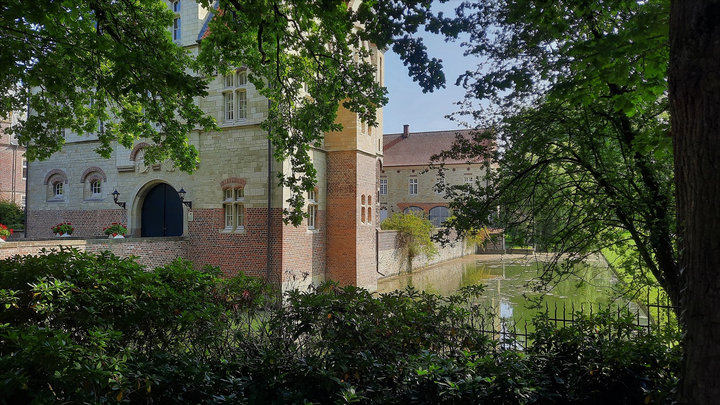 Der Rückweg führt uns über Füchtorf. Wir besuchen hier die Doppelschlossanlage Harkotten, das Schlosss Harkotten von Korff und das Schloss Harkotten von Ketteler. Das Kettelersche Schloss wurde jahrelang vom verrückten Designer Colani genutzt, bevor es 1987 umfassend restauriert wurde und seitdem als Firmensitz der sieger design dient. Das Korffsche Schloss wird privat von der Familie von Korff zu Harkotten genutzt.