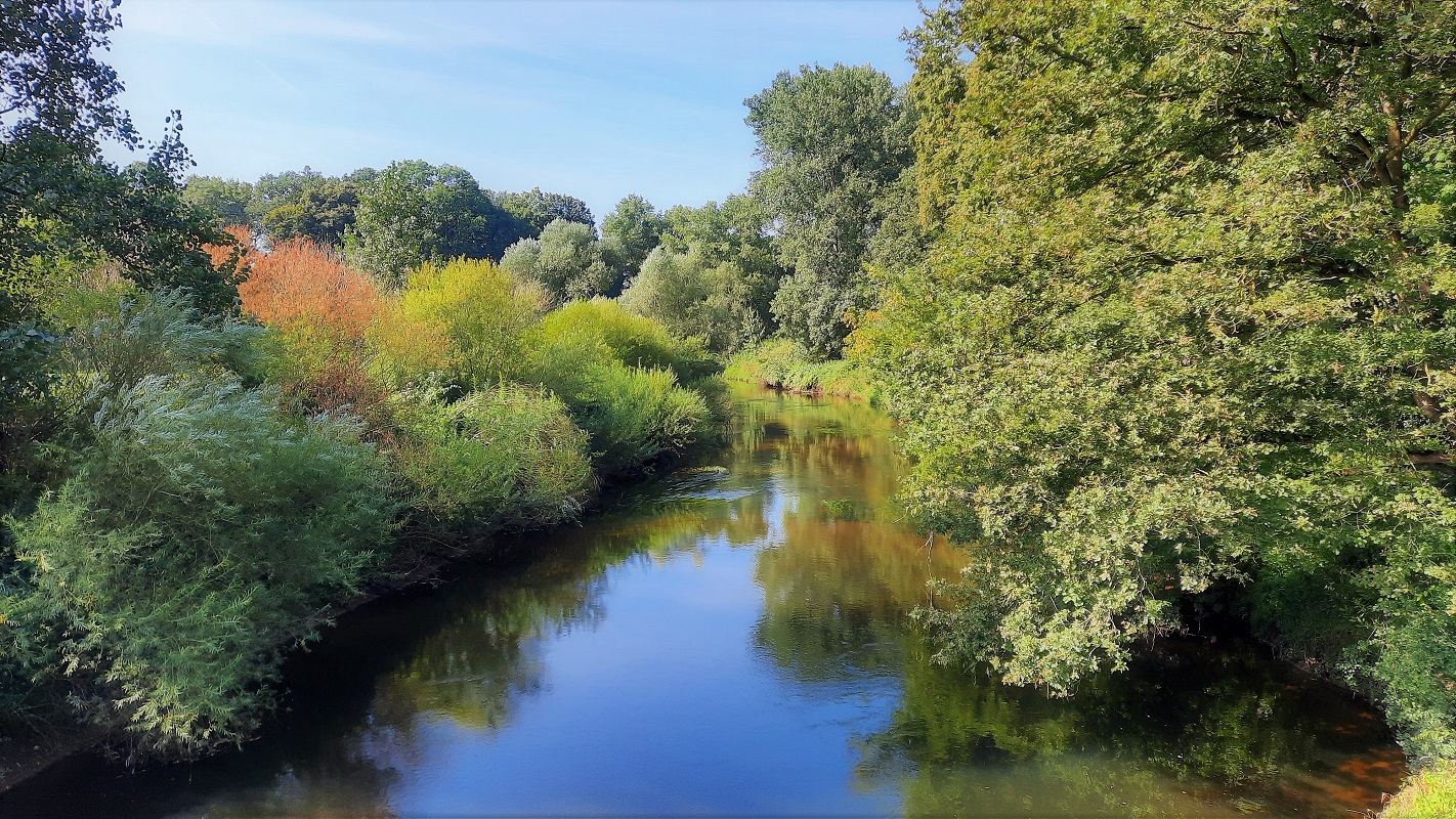 Zehn Uhr als Startzeitpunkt wollen wir beibehalten. Heute soll es nach Nordkirchen gehen. Über die Promenade, die Anetteallee, vorbei am Aasee errreichen wir Mecklenbeck. Wir passieren die noch nicht fertige neue Trassenführung der Heroldstraße, auf der künftig nach 40jähriger Planungszeit die Bahnlinie unterfahren werden kann. Durch die Grafschaft geht es nach Amelsbüren. Wir durchqueren den Ort und verlassen ihn über die Davertstraße in Richtung Davensberg. Hinter dem dortigen Bahnhof liegt die Deipen Wiese, die vom Emmerbach durchflossen wird. Dieses Überschwemmungsgebiet hat die Gemeinde naturnah neu gestaltet.