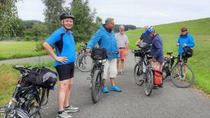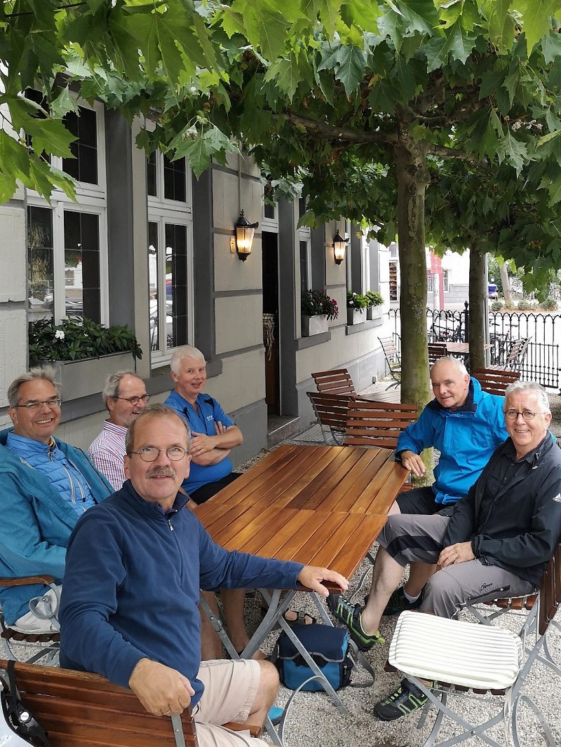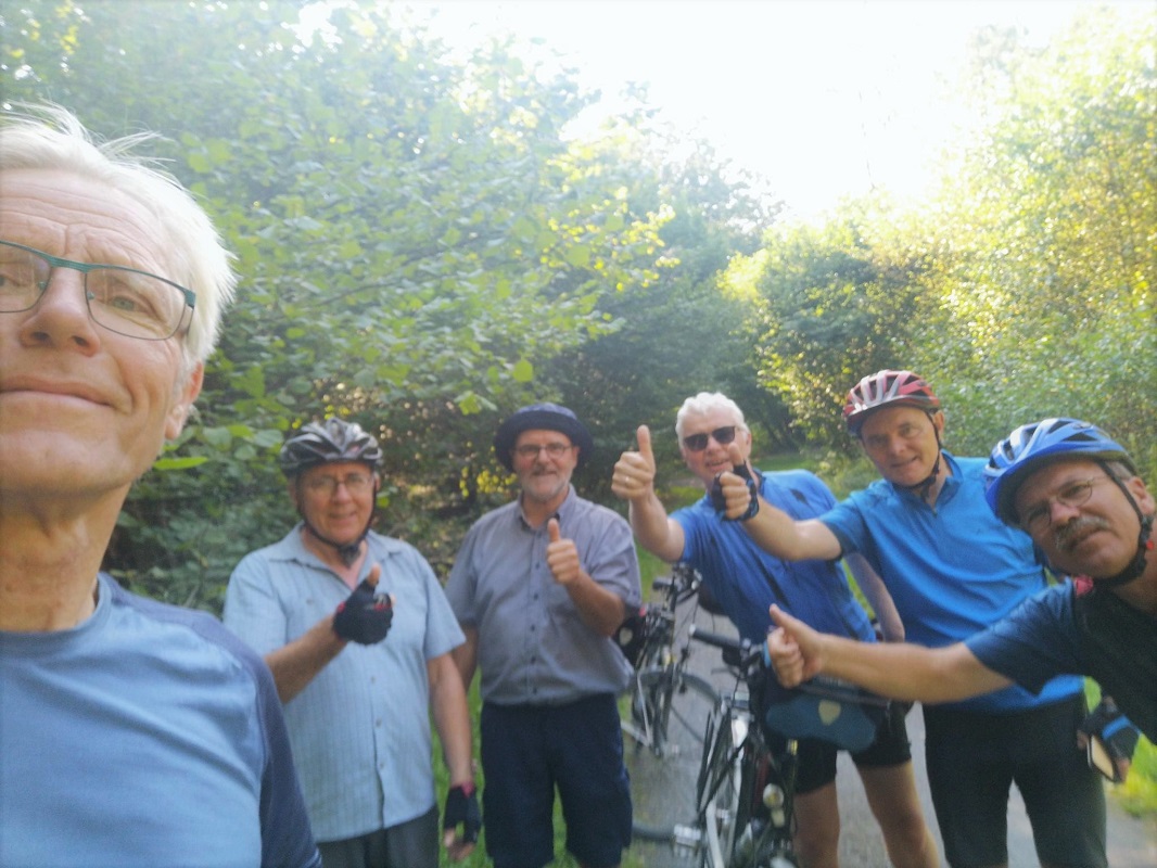 Heute am letzten Tag fehlt Felix. Zu sechst machen wir uns auf die Ost-Tour nach Glandorf. Wir verlassen Münster über die Schillerstraße, dann am Kanal entlang bis zur Schleuse und vorbei am Tierheim durch den Boniburger Wald nach Handorf. Vorbei an der Lützow-Kaserne und dem Friedhof Lauheide und durch Westbevern kommen wir bis Ostbevern. Hier zwingt uns Peter ins Ortszentrum. Er braucht Kafffee und Gebäck. Karl-Heinz Navi rächt sich bei der Weiterfahrt mit Fehlinformationen. So haben wir einige Mühe, wieder auf den rechten Weg zu kommen.