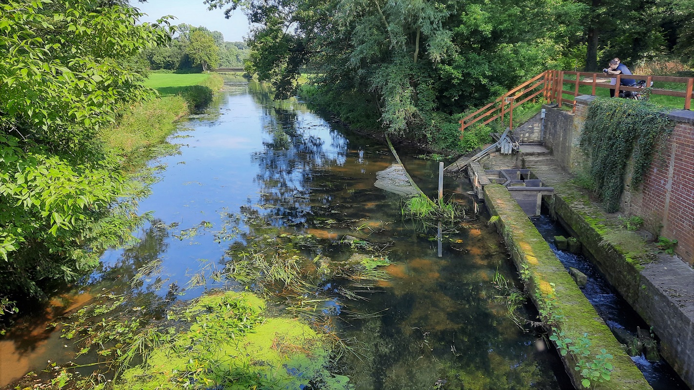 Wir sind jetzt deutlich auf dem Rückweg nach Münster. Südlich von Billerbeck schauen wir uns die aufwändig renaturierte Berkelquelle an. Lustig sind die vielen Enten, die es schaffen, sich gründelnd durch heftige Fußbewegungen auch noch vorwärts zu bewegen. Das hat in der Form noch keiner gesehen.