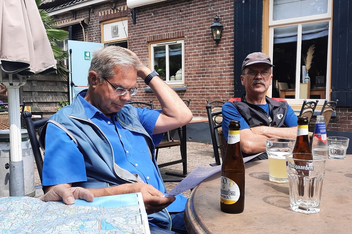 Es gibt sonst nicht viel zu berichten vom heutigen Tage. Die Orte sind klein und unscheinbar. Die Maas ist unser ständiger Begleiter. Sie bildet heute die Grenze zwischen den Provinzen Noord-Brabant (im Süden) und Gelderland (im Norden). Unsere erste größere Pause machen wir in Hedel nord-westlich von ´s-Hertogenbosch in einer Gaststätte zum Aufwärmen und trocknen und anschließendem ALDI-Besuch. Gegen 14 Uhr gibt einen weiteren Aufenthalt in Lith in der Lithse Bakkertje direkt an der Maas gelegen. Hier versuchen wir, den Regen auszusitzen. Das gelingt aber nicht. Erst gegen 15 Uhr wird es für den Rest des Tages trocken. Und der Wind ist uns auch weitgehend gnädig.