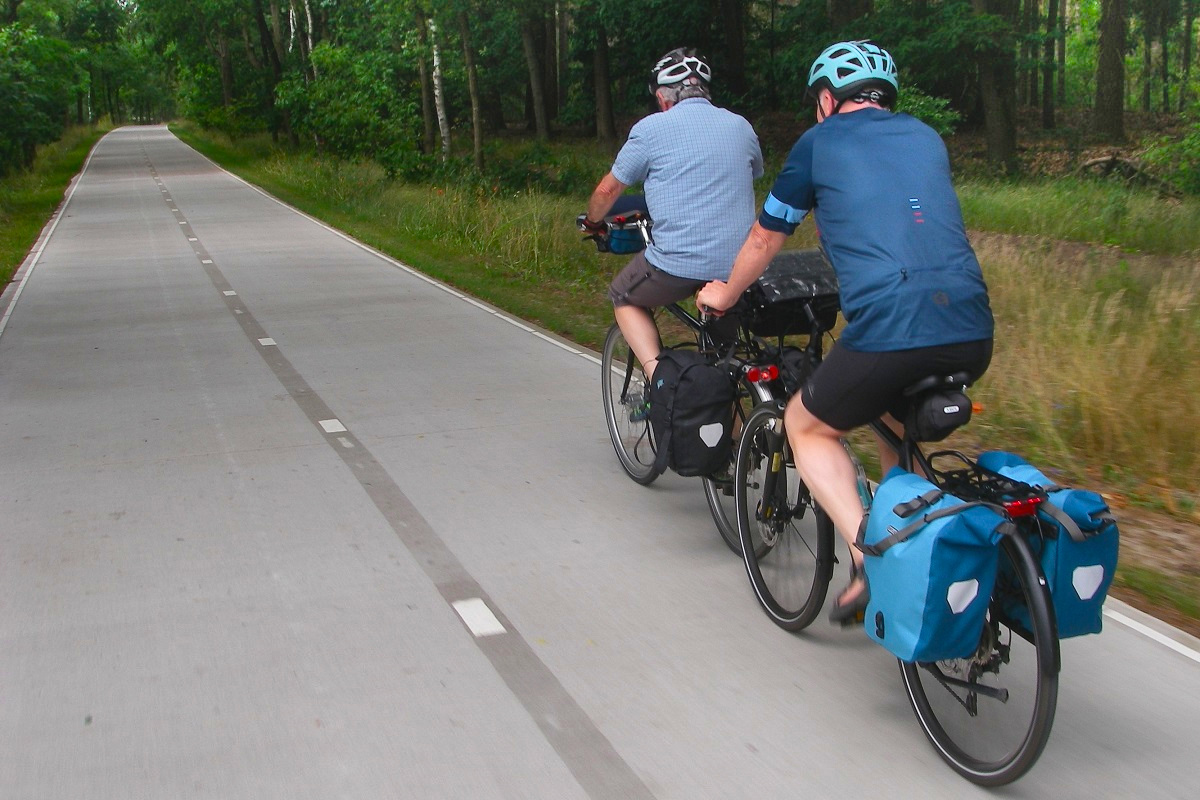 Gegen 12:30 Uhr sind wir auf den Rädern. Schon in der Stadt nehmen uns sichere Radwege auf einer ganz neu gebauten breiten Betonpiste. Das fängt gut an. Vor Utrecht in Soest queren wir De Vlasakkers, ein Naturschutzgebiet, dass teilweise als Truppenübungsplatz mit einer Start- und Landebahn genutzt wird. Günter als Segelflieger ist das Gelände bekannt.