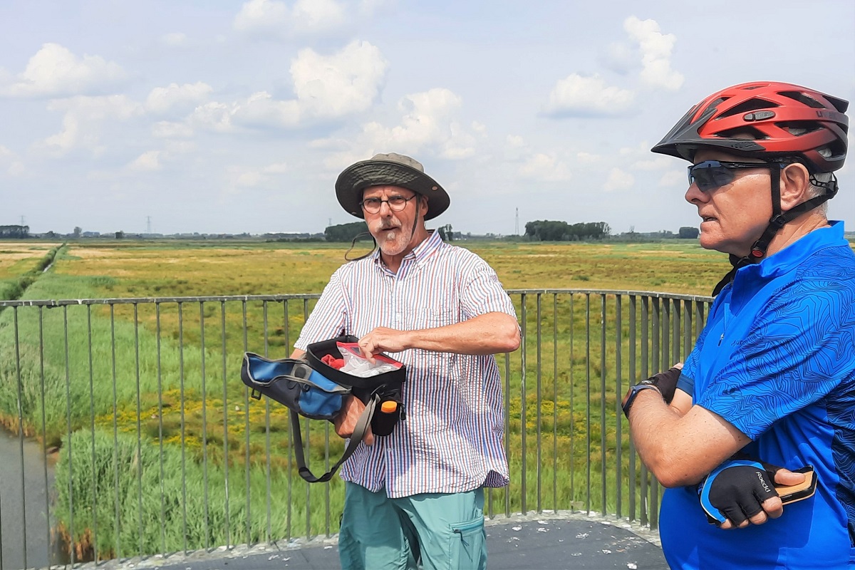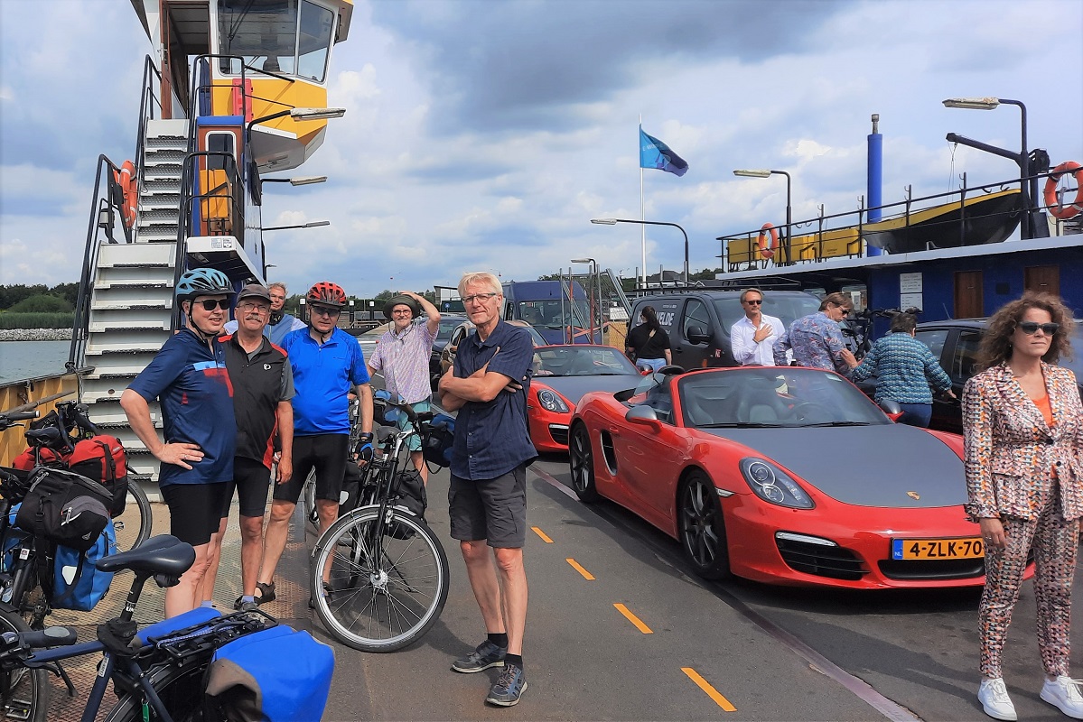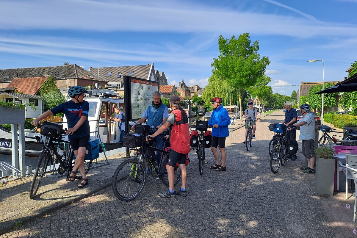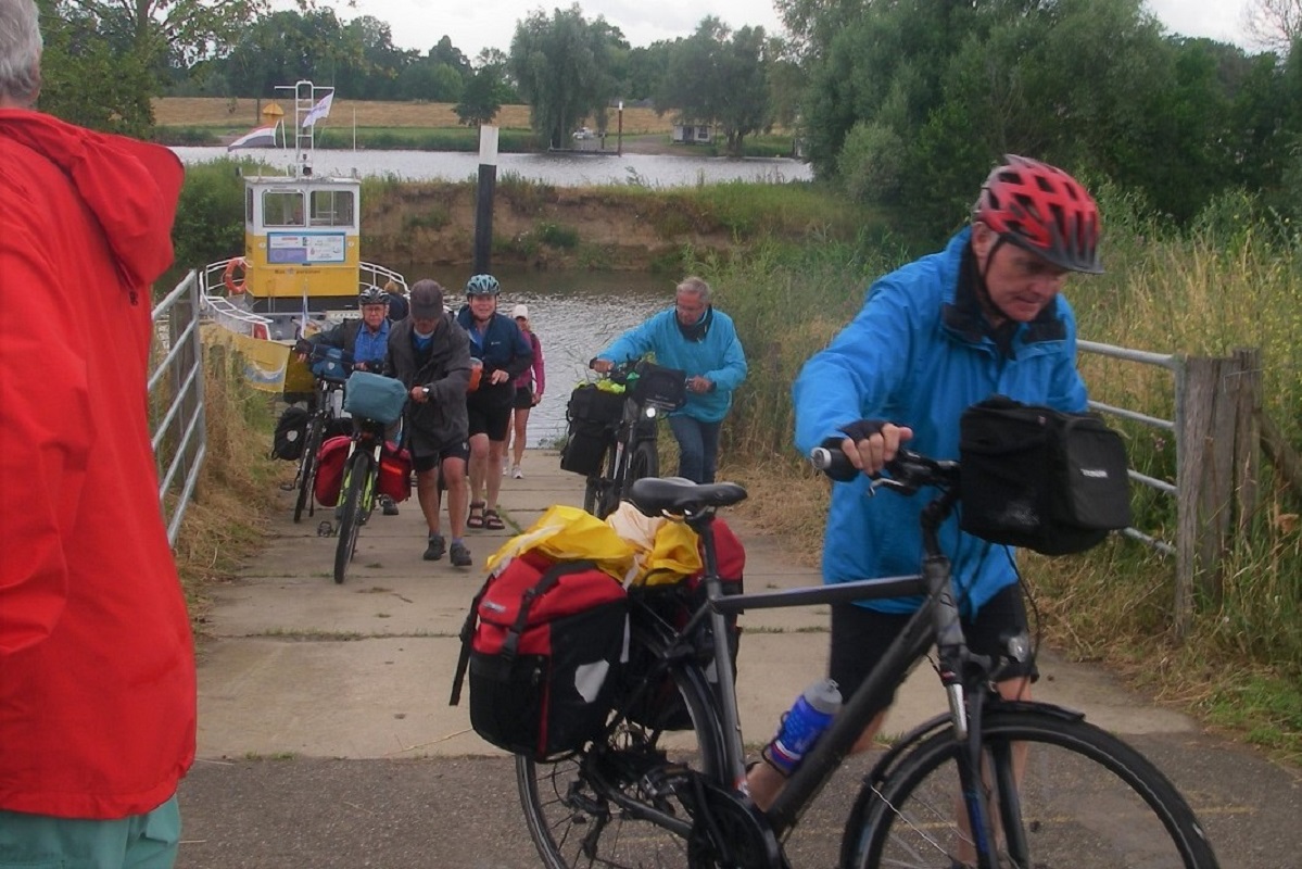 Als endlich alles ausgetrunken und gegessen ist, wollen wir unsere Fähre nehmen, erleben aber unseren ersten Reinfall. Die Fähre hat wegen Personalmangel außerplanmäßig seinen Dienst für den heutigen Tag eingestellt. Fehlendes Personal scheint also nicht nur bei uns in Deutschland ein Problem zu sein. Zunächst sind wir ratlos, kommen aber sehr bald zur Erkenntnis, dass wir umkehren und die nächste Fähre weiter östlich über die Nieuwe Merwelde finden müssen. Mittlerweile sind zwei ältere holländische E-Bikerinnen auf uns aufmerksam geworden. Sie unterstützen uns wortreich bei unserer Wegeplanung und erklären sich schließlich dazu bereit, uns auf dem Weg zur Ersatzfähre zu begleiten. Die nächsten 17 Kilometer hecheln wir hinter den beiden flotten Damen her. Bei Boven Hardinxveld erreichen wir die Fähre, müssen allerdings eine halbe Stunde warten um nach Werkendam auf der anderen Seite zu kommen. Unsere beiden Führerinnen nehmen die Fähre ebenfalls. Sie erklären sich sogar bereit, uns bis in den Biesbosch zu bringen. Es wird eine anstrengende Fahrt mit heftigem Gegenwind. Nachdem wir uns bei den netten Ladies bedankt haben, sind wir wieder Herren der Geschwindigkeit. Wir fahren eine gemütliche große Runde durch einen Teil des Biesbosches.