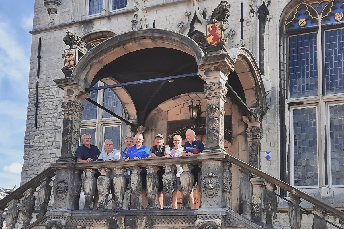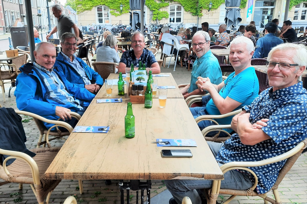 Das Hotel ist ganz ordentlich, kleine Zimmer und wieder sehr steile Treppen. Fürs Frühstück am nächsten Morgen verweist man uns an eine nahegelegene Bäckerei, Sweet Ima. Zum Hotel gehört nur eine Tapasbar. So mussten wir erst einen Wirt für unser Begrüßungsbier suchen. Wir fanden ihn in der Nähe beim Griechen im Garten direkt an der Linge, die mitten durch die Stadt fließt und und hier in die Merwede mündet.. Fürs Abendessen wollten wir aber etwas Preiswerteres. Auf dem Marktplatz, der vollgestellt war mit Außengastronomie und von mindestens sechs Restaurants rundherum bedient wurde, landeten wir schließlich bei einen weiteren Griechen. Das Essen war so fleischlastig, dass das für alle bis zum Ender der Tour genug war. Nache inem kurzen Rundgang durch die Altstadt landeten wir noch in unserer Tapasbar, wo es noch Flüssiges für uns gab.