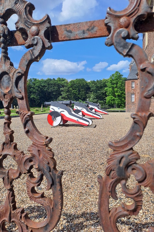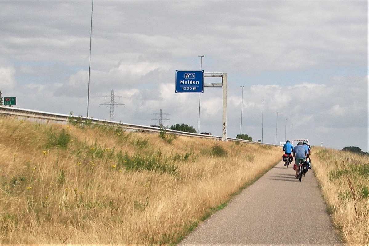 Heute werden wir die Niederlande wieder verlassen. Vorher geht es aber noch ein Stück maasaufwärts bis wir vor Grave die Flusseite wechseln, diesmal ohne Fähre über eine Brücke. Auch Grave war eine Festungsstadt. Die Altstadt ist im 2. Weltkrieg weitgehens zerstört worden, trotzdem macht es einen typisch holländischen Eindruck. Immer an der Maas- jetzt wieder auf Noord-Brabanter Seite – entlang passieren wir die Kraaijenbergse Plassen, ein ausgedehntes Seengebiet unter anderem mit einer großen EuroParcs-Anlage. Über das Örtchen Linden inmitten der Wasserwelt finden wir die Auffahrt zur A73. Auf dem Radweg neben der Fahrbahn wechseln wir erneut die Maasseite, biegen ab nach Heumen und queren gleich danach den Maas-Waalkanaal, dem wir zwei Kilometer folgen. Und schon sind wir wieder an der Maas, die wir aber sehr bald endgültig verlassen.