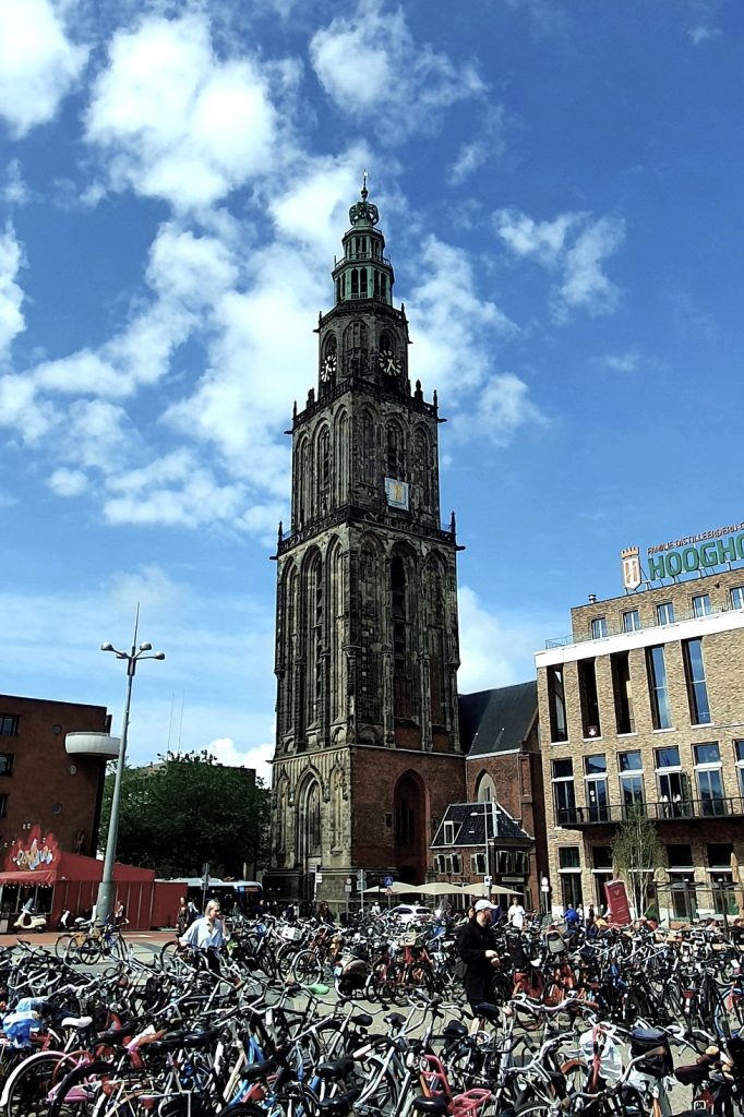 Bis Groningen geht es jetzt überwiegend entlang des Eemskanals weiter. Das heißt, der heftige Gegenwind kann uns ungebremst treffen. Für die 33 Kilometer bis zum Zentrum von Groningen brauchen wir drei Stunden. Die Kaffeepause auf dem Grote Markt neben dem Rathaus haben wir uns verdient.