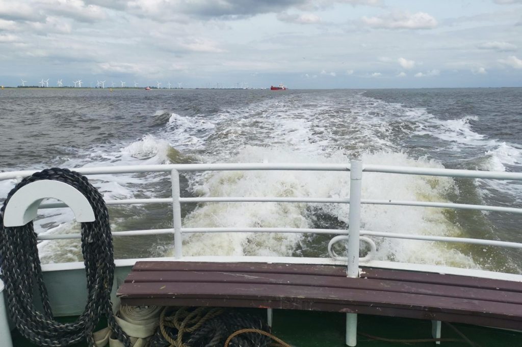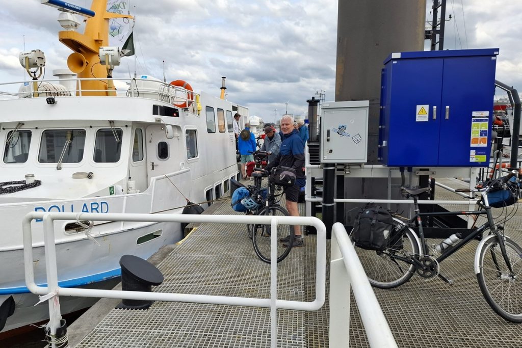 Nach einer dreiviertel Stunde Wartezeit kommt die „Dollard“ unser Fährgastschiff, eine reine Personen- und Fahrradfähre. Die braucht achtzig Minuten bis nach Delfzijl auf der anderen Dollardseite.
