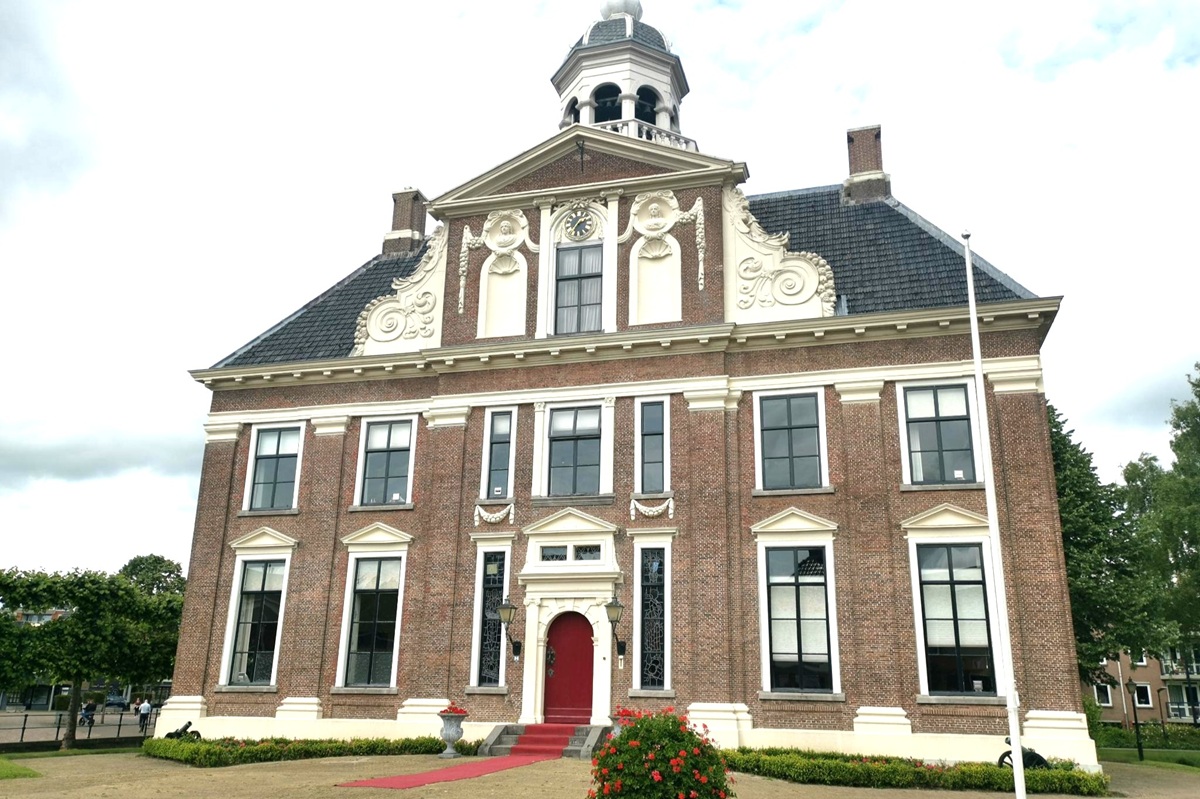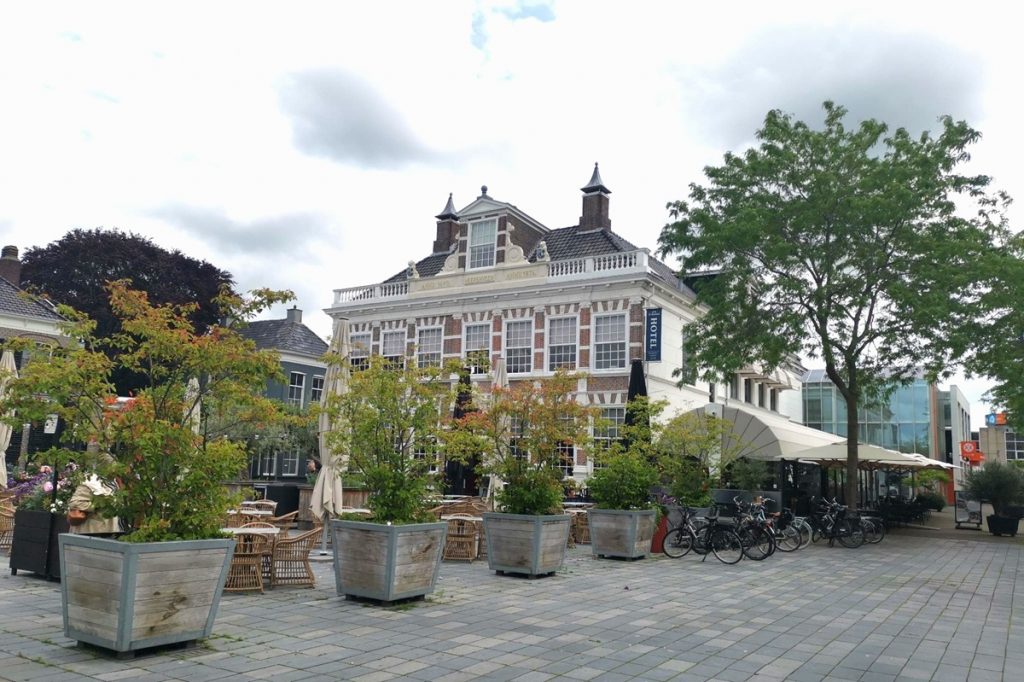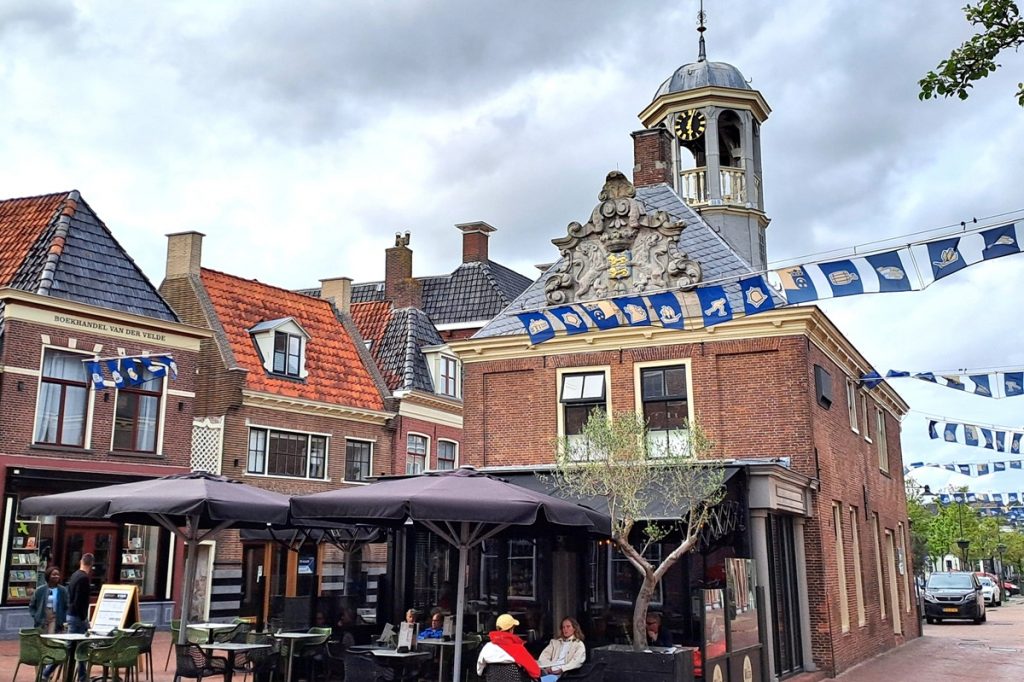 Die Landschaft bleibt offen, ist landwirtschaftlich geprägt. Orte sind klein und selten. Nach weiteren 35 Kilometern erreichen wir Heerenveen, wo wir neben dem Rathaus ein Einkehrmöglichkeit finden.