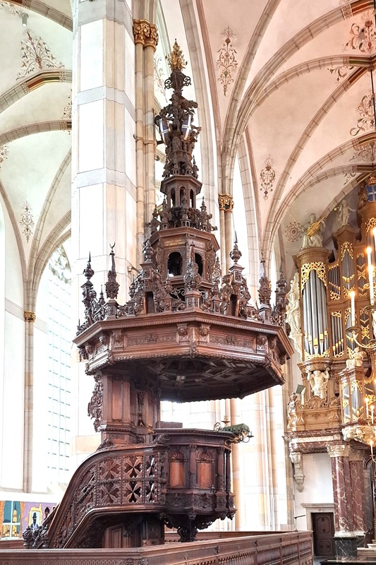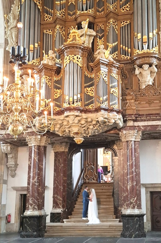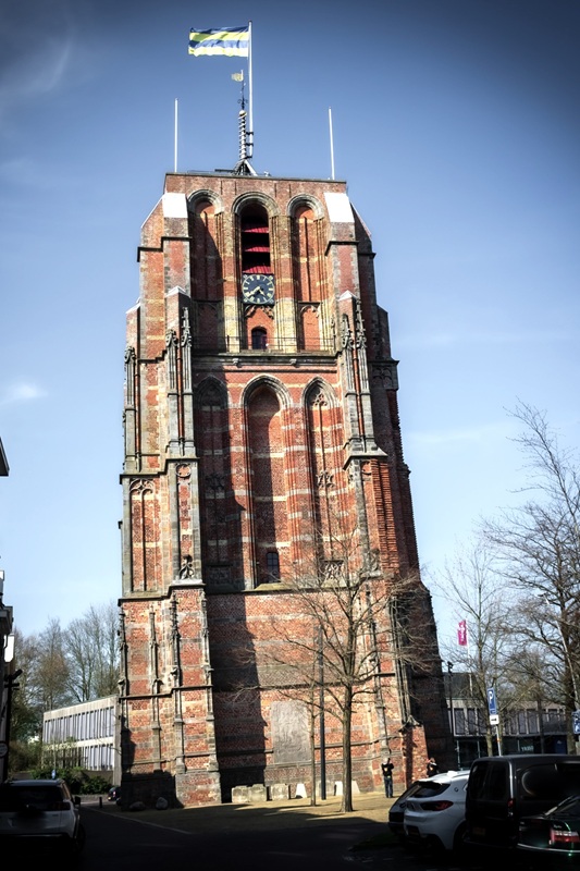 Bis Zwolle geht es jetzt am Zwarte Water entlang. In Hasselt erwischt es Günter. Er fährt zu dicht hinter Felix und stürzt, als dieser plötzlich abbremsen muss. Zum Glück bleibt es bei leichten Schrammen. In Zwolle fahren wir bis ins Zentrum und machen dort Pause. Die Grote Kerk nebenan ist profaniert und nennt sich jetzt Academiehuis, mit einer Vielzahl von kulturellen Angeboten, sowie einem Büchermarkt und einem Café im hinteren Teil der riesigen Kirche. Außerdem beherbergt sie eine imposante Kanzel, und eine grandiose Schnitger-Orgel.