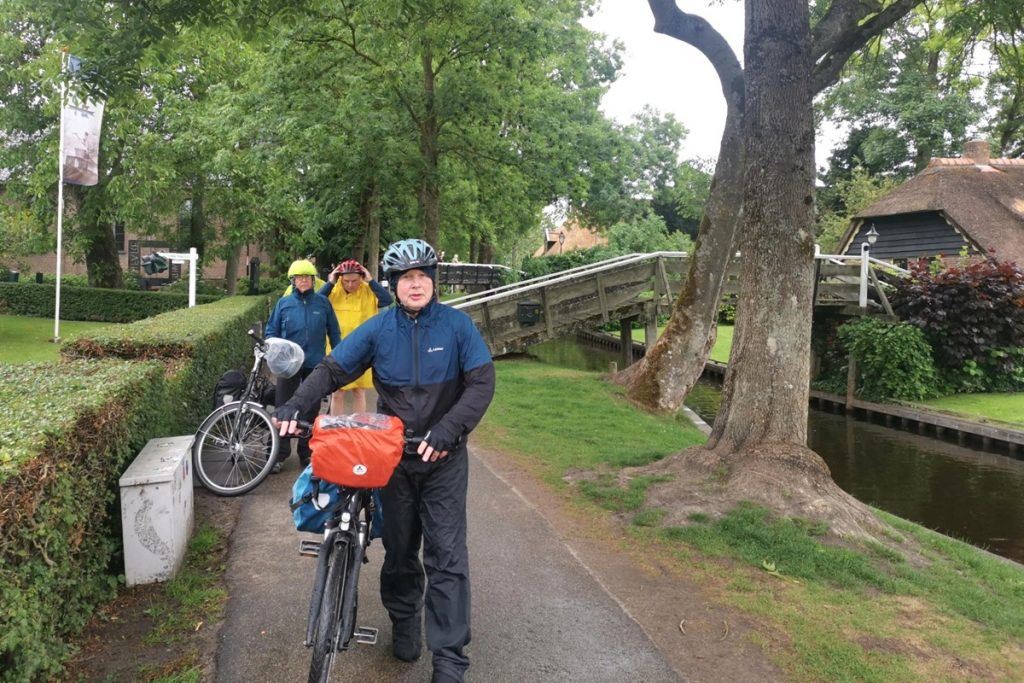 Wir starten bei Regen. Der begleitet uns bis Zwolle. Trotzdem kommen wir heute dem Genussradeln ein wenig näher. Der Wind hat etwas nachgelassen und die Wege sind einfach herrlich. Etwa acht Kilometer fahren wir entlang des Kanals Beukers-Steenwijk bis wir in Giethorn sind.