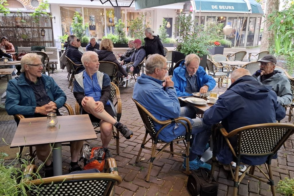 Unser letzter Tag soll uns windmäßig für die Strapazen der letzten Tage entschädigen. Wir fahren ausschließlich ostwärts und der Wind bläst aus Westen. Perfekt. Dafür fängt es auf der Hälfte der Strecke an zu regnen. Für den Rest des Tages ist Regenzeug angesagt. Deventer queren wir am Rande der Innenstadt. An der Ijssel gelegen ist sie eine der ältesten Städte der Niederlande und Hansestadt mit einem sehr sehenswerten Altstadtkern. Das entgeht uns aber vollständig. Wir sind weiter auf schneller Fahrt. 35 Kilometer vor Enschede in Goor machen wir unsere einzige richtige Pause im Grand Café de Zon.